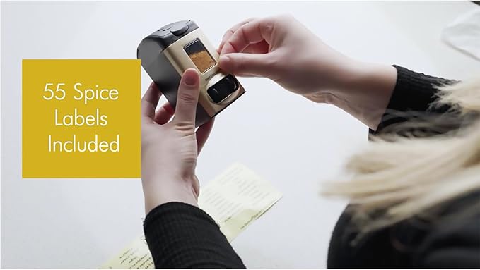 - SLEEK DESIGN makes for easy storage and simple organization. With 55 spice labels and the option to stack up to 48 different spices, you'll never dig through a messy cabinet again.