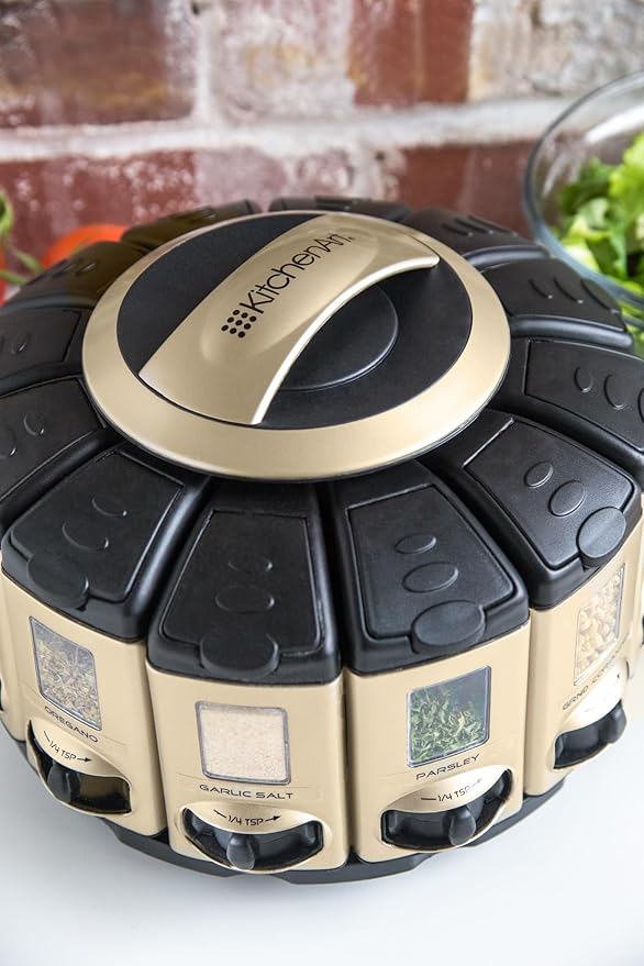 - TWELVE SPICE CAPABILITY: This carousel can hold up to 12 different spices and rotates for ease of access.