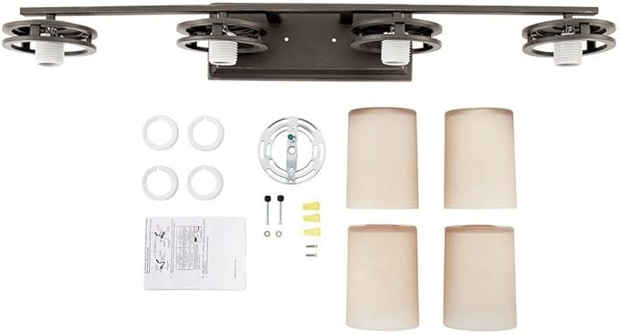 - What's in the Box: (1) Mounting Strap, Strap Mounting Screws, Mounting Screws, Lock up Knobs, Lockwasher, (4) Glass Shade(s) and Wire Nuts. Bulb(s) not included.