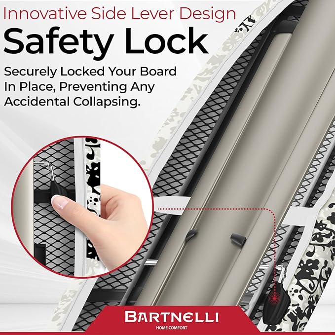 - CUSTOMIZE TO YOUR HEART'S CONTENT – HEIGHT & STORAGE, SOLVED! What if your ironing board could fit you perfectly and vanish out of sight when not needed? Say hello to adjustable heights and easy folding with a secure lock for storage. Tailor it to your comfort, then tuck it away without a second thought. Finally, a board that adapts to your life, not the other way around. Comfort and convenience? Check and check!