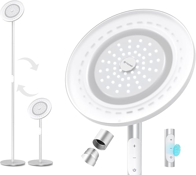 TROND Floor Lamp, LED Torchiere Uplight Lamp, 5 Brightness Aluminum Modern Standing Light, 5500K Natural Daylight, 5000 lm, 71in Tall, 30 Mins Timer, Detachable, for Office Living Room Bedroom, Silver
