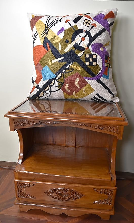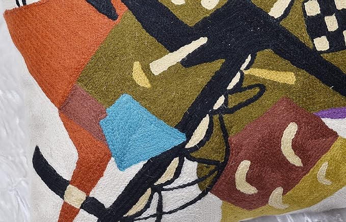 Kandinsky Abstract Pillow Cover - White Modern Throw Pillowcase Cream Chair Cushion Contemporary Farmhouse Pillows Modern Couch Handmade Wool Size 18x18
