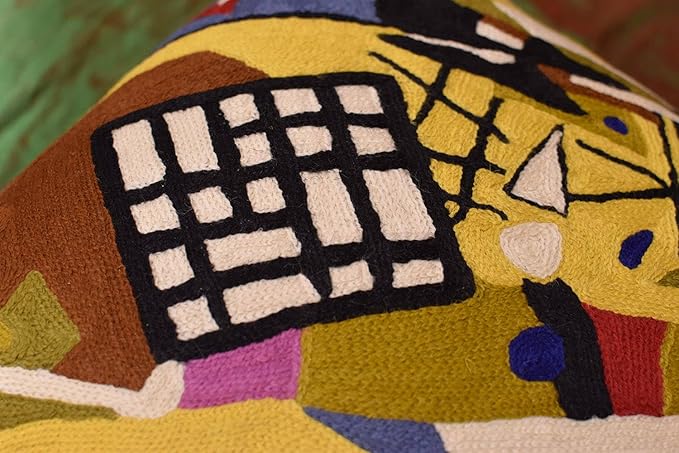 Kandinsky Modern Pillow Cover Frame Gray Abstract Pillowcase Grey Modern Chair Cushion Contemporary Outdoor Pillows Kids Room Handembroidered Wool Size 18x18