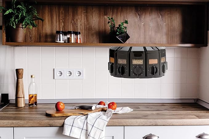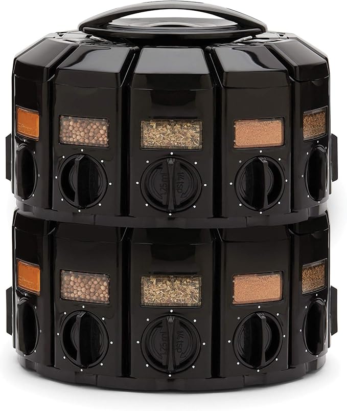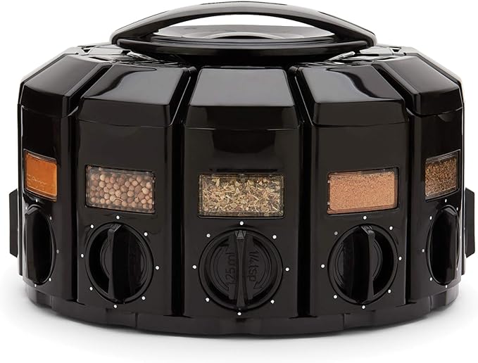 - TWELVE SPICE CAPABILITY: This carousel can hold up to 12 different spices and rotates for ease of access.