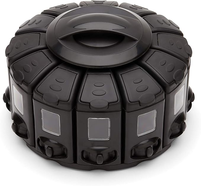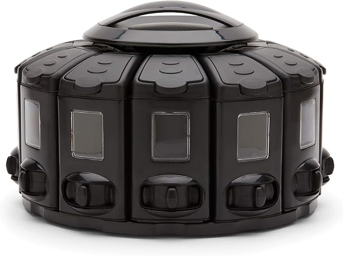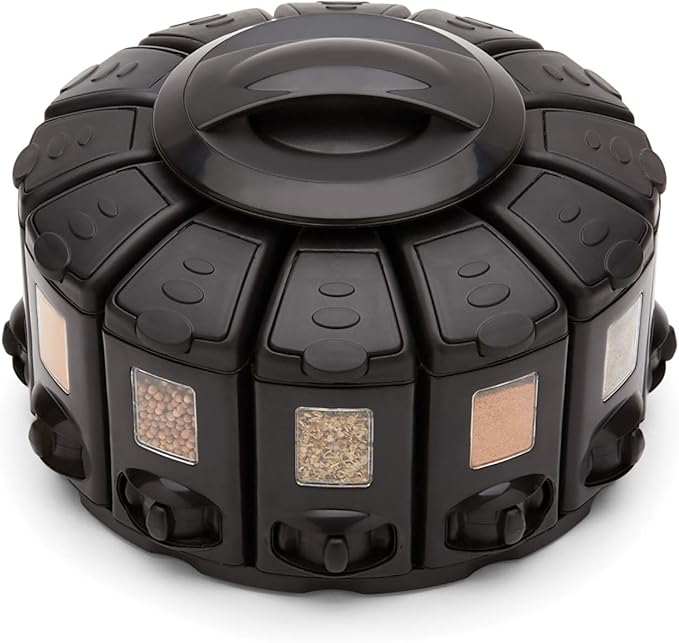 - LONG-LASTING DESIGN: Made from durable plastic with a sleek black finish, this seasoning carousel is built to last and sure to complement any kitchen environment.