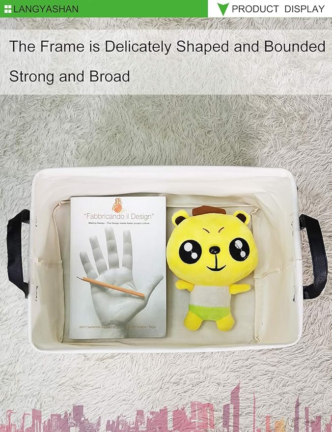 - Material: Polyester canvas linen and PE environmental protection waterproof coating. This storage basket easy to stand and foldable, Waterproof PE coating inner, which to achieve the effect of moisture resistant.