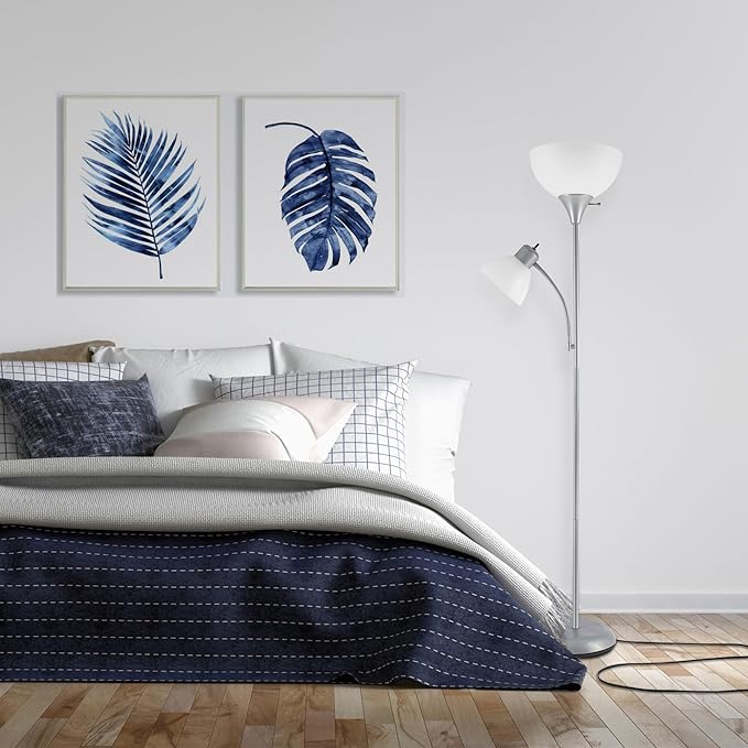 GLOBE Electric 67134 72" Torchiere Floor Lamp and Adjustable Reading Light, Silver, Frosted Shade, Dual Rotary Switch, 3-Step Dimming, Modern Lighting for Living Room or Office, Timeless