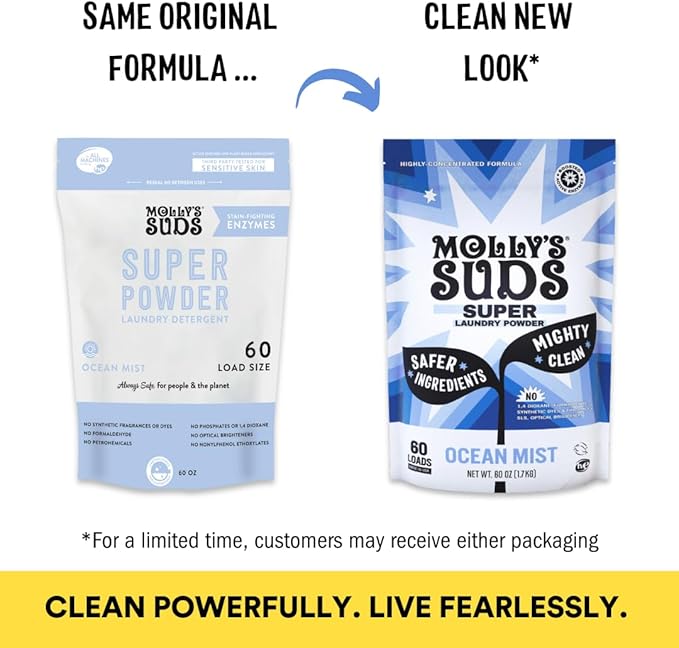 - WHAT'S INCLUDED: (1) 60 Load Pack of Molly's Suds Ocean Mist Super Powder