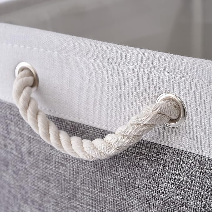 Large Storage Baskets for Shelves, Fabric Baskets for Organizing, Collapsible Storage Bins for Closet, Nursery, Clothes, Toys, Home & Office [3-Pack, White&Grey]