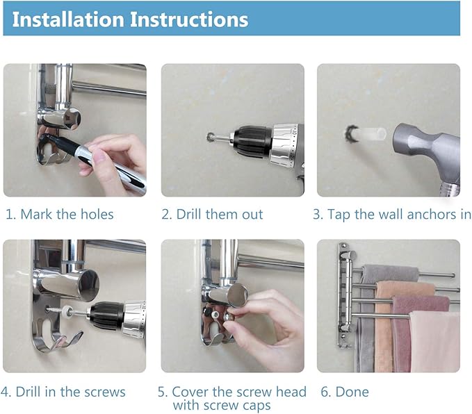 - ROTATES 180°- Multiple swivel arms allows you to spread out the desired arms for easy drying, and swivel them back against the wall to save space.