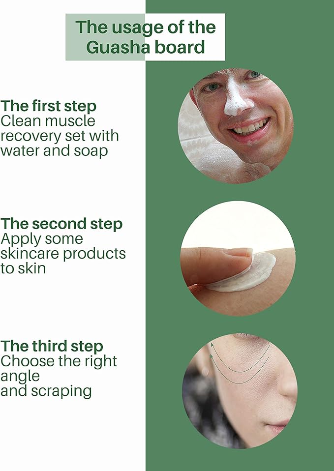 - ADVICE: apply some skincare products to skin before scraping, clean this muscle recovery set with warm water and soap