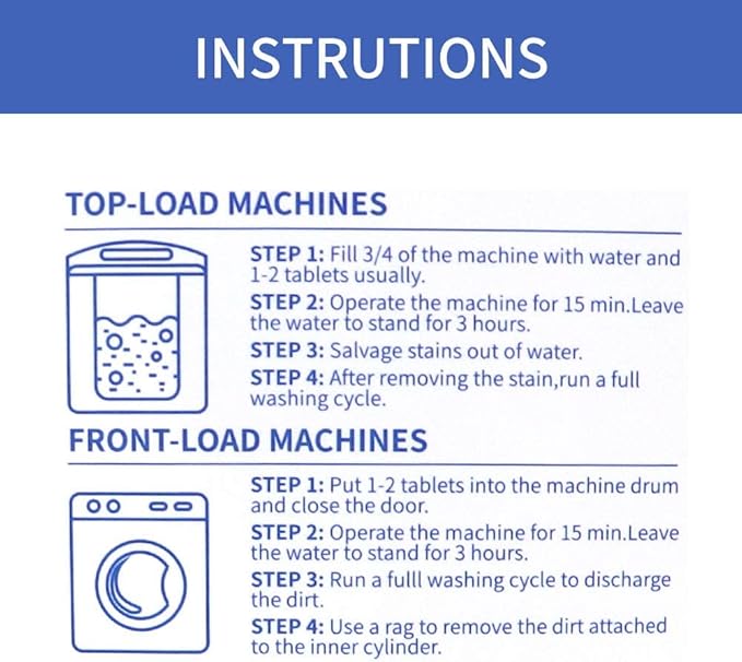 - VISIBLE EFFECT - Natruth top loader washing machine cleaning tablets have higher solubility and no residue to dissolve and remove stains occur in your washer machine. It is recommended to use it every month to ensure that your washing machine is fresh and clean, avoiding secondary pollution to clothes and protecting the health of your family.