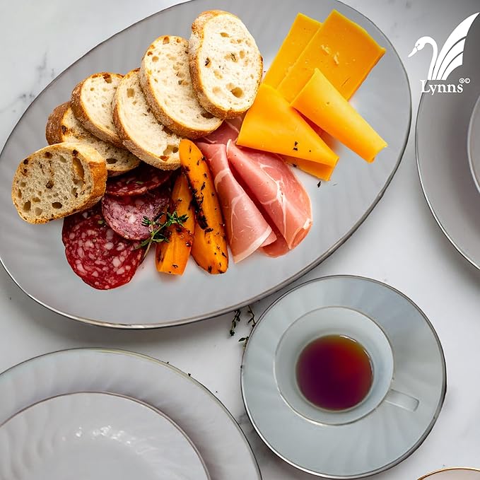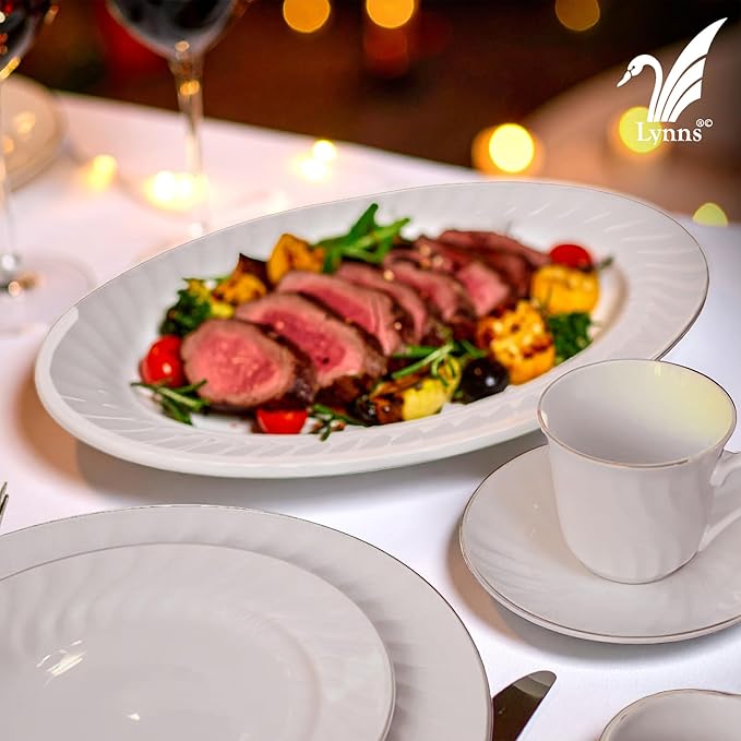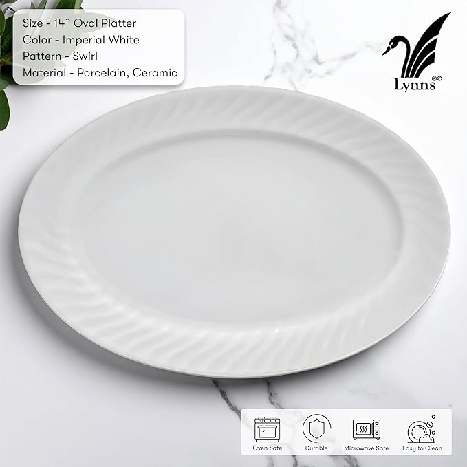 Lynns Paradise Imperial White 14-Inch Oval Platter, Set of 2, White; Heavy Duty; Chip Resistant; Lead and Cadmium Free; Freezer to Oven Safe up to 500°F