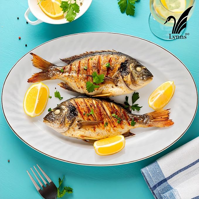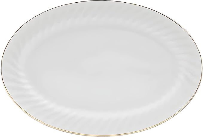 Lynns Paradise Imperial Gold 14-Inch Oval Platter, Set of 2, White; Heavy Duty; Chip Resistant; Lead and Cadmium Free; Freezer to Oven Safe up to 500°F