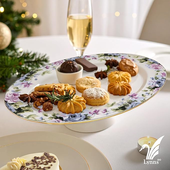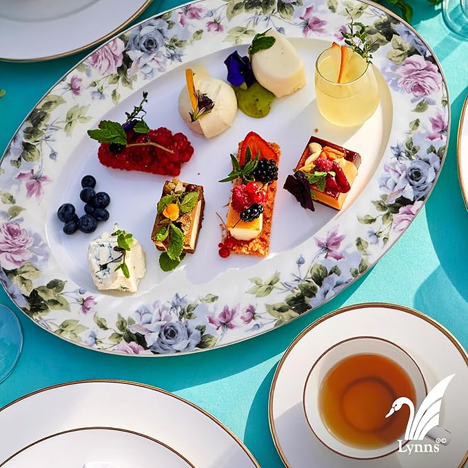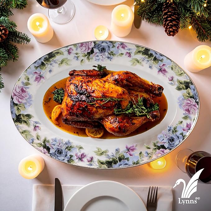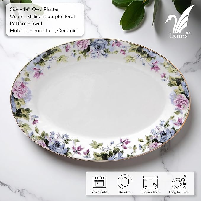 Lynns Paradise Millicent 14-Inch Oval Platter, Set of 2, Purple; Heavy Duty; Chip Resistant; Lead and Cadmium Free; Freezer to Oven Safe up to 500°F