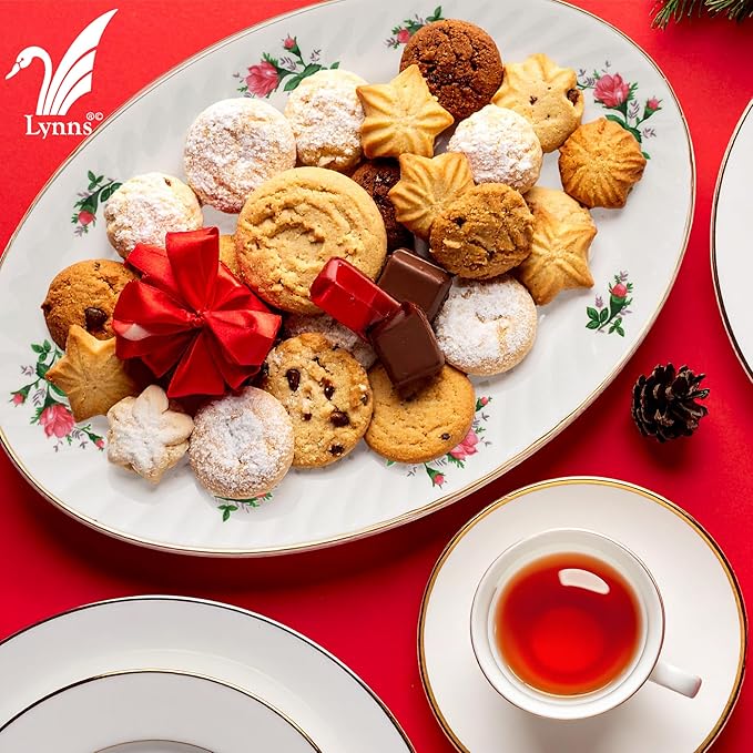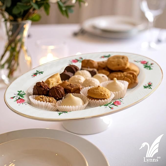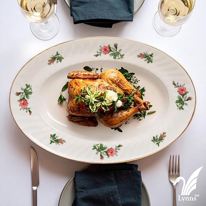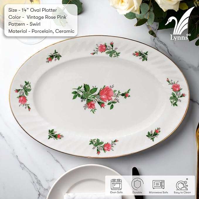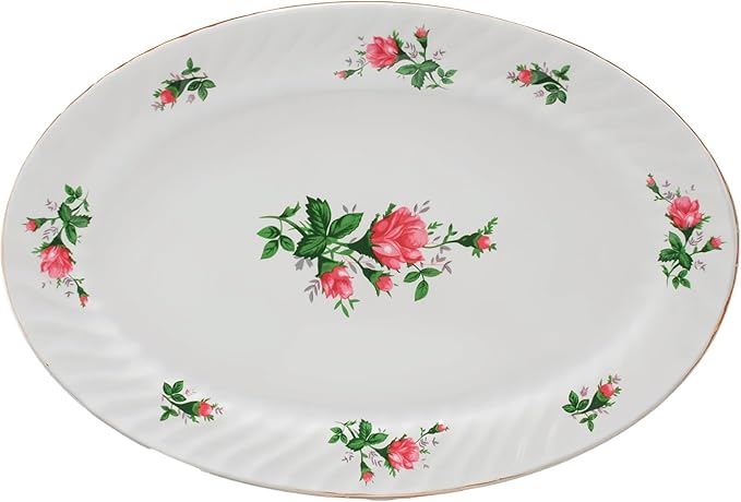 Lynns Paradise Vintage Rose 14-Inch Oval Platter, Set of 2, Pink; Heavy Duty; Chip Resistant; Lead and Cadmium Free; Freezer to Oven Safe up to 500°F
