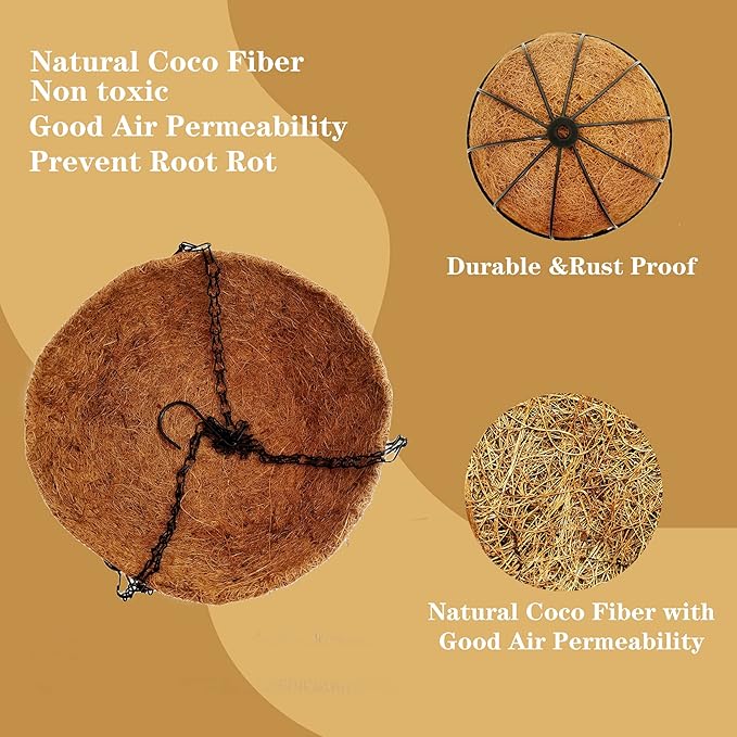 - 🍀 NATURAL MATERIAL AND GOOD CARING:with the material of natural coconut fiber,hanging pots liners feature a good air and water permeability so they can provide good care for your plants. and they are environment- fiendly with the features of non-toxic and tasteless ,so you don't need to worry that they will harm your health and your plants.
