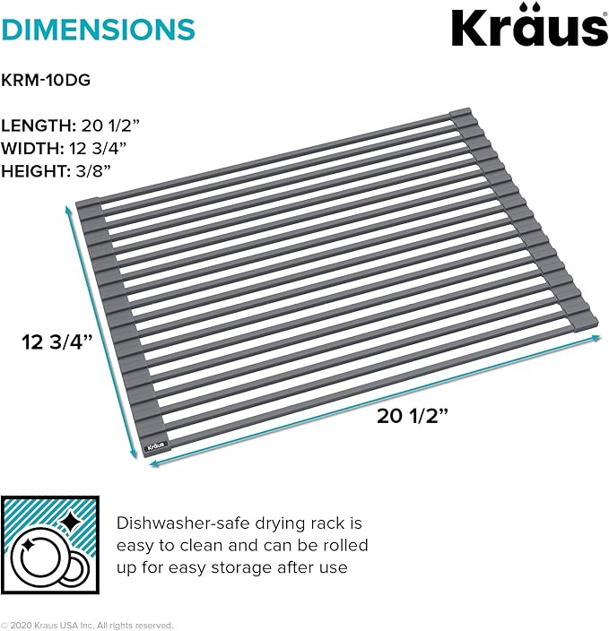 Kraus Multipurpose Over-Sink Roll-Up Dish Drying Rack, Colander and Trivet in Dark Grey, KRM-10DG
