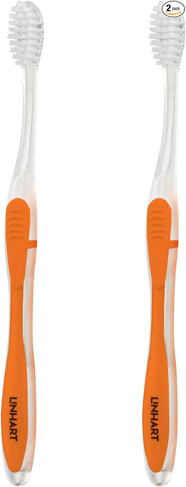 LINHART Extra Soft Toothbrush – Teeth Whitening Toothbrush (2 Pack, Orange and White)