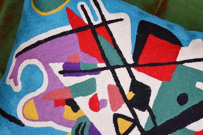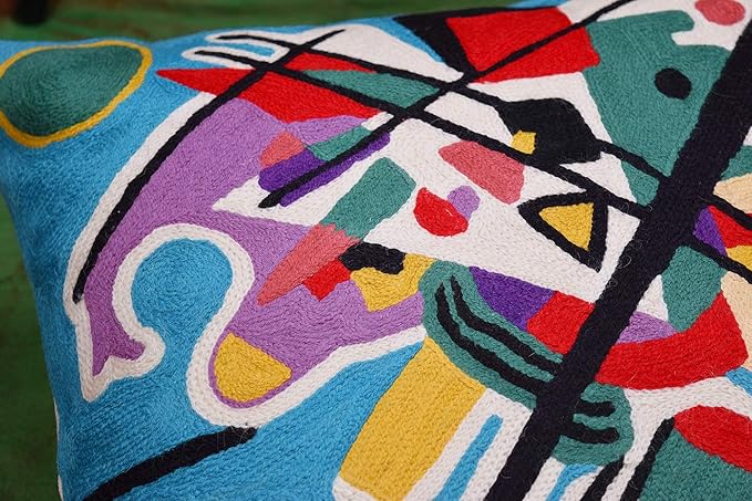 Kandinsky Modern Pillow Cover - Blue Painting | Abstract Throw Pillows | Modern Chair Cushion| Contemporary Accent Pillows | Mid Century Chair Cushions | Handmade Wool Size 18x18