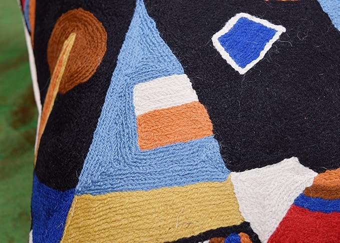 Kandinsky Contemporary Throw Pillow Cover - Bright | Red Modern Pillow Cases | Abstract Accent Pillows | Contemporary Couch Cushions | Hand Embroidered Cushion | Wool Size 18x18