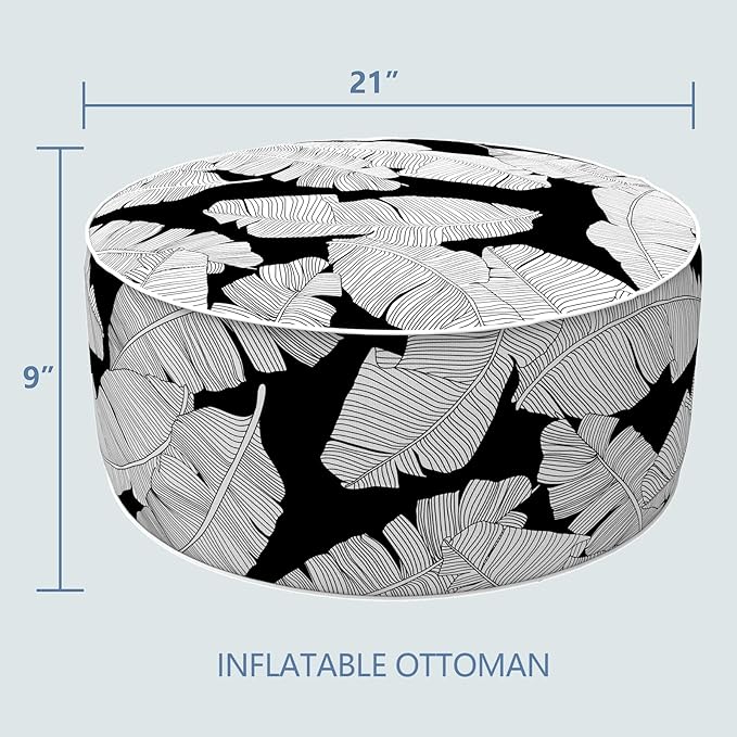 LVTXIII Inflatable Stool Ottoman Footrest with Handle, Indoor or Outdoor Foot Rest for Home Patio Garden and Camping, D21 x H9, Black Lush Leaf Jungle
