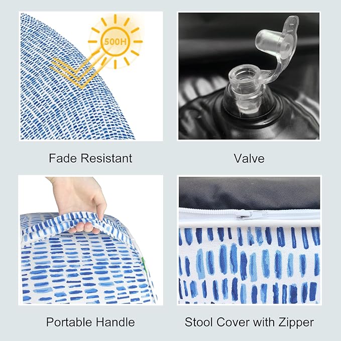 LVTXIII Outdoor Inflatable Ottoman Stool, Patio Water Repellent Footrest Stool with Handle, Portable Outside Round Ottoman for Patio Garden, Camping or Home Use, 21"x21"x9", Blue Pebble
