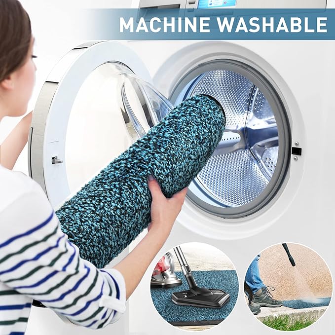 Mibao Front Door Mat, Dirt Trapper Welcome Mat for Outdoor Indoor, Non-Slip Waterproof Doormat, Durable Machine Washable Low Profile Entry Rug for Back Door Outside Patio Porch, 72" x 24", Blue