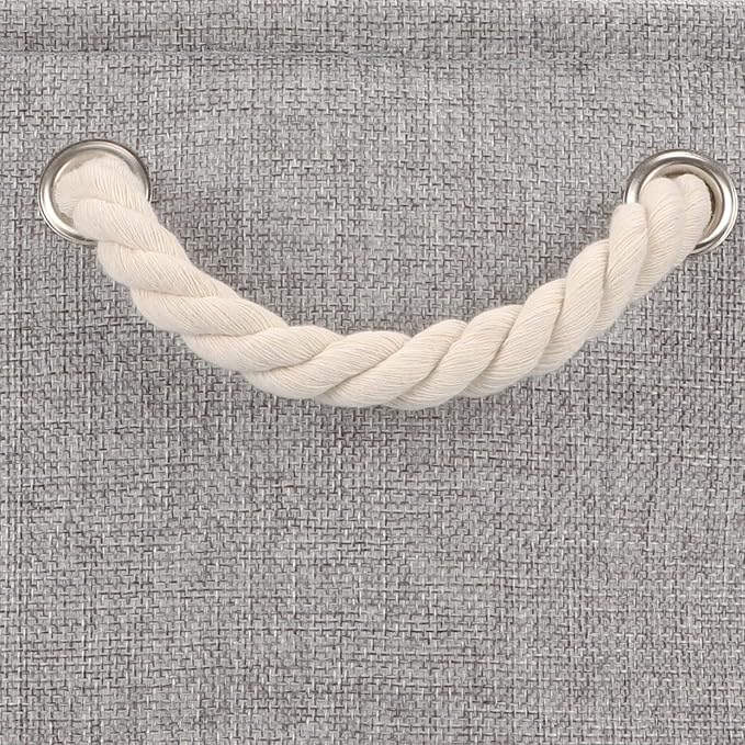 - Cotton Rope Handles and Premium Fabric: The canvas storage bins equipped with handles for moving conveniently. Sturdy soft handles on both sides are convenient to retrieve from shelves. These storage baskets are made of durable fabric which is strong and lightweight
