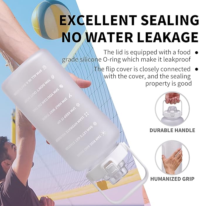 - đȘăMotivational Quote & Time MarkerăThe 100 oz large fitness water bottle jug with straw is with time markers to remind you to drink. With the unique motivational measurement statements on it, the big gallon water bottle with tracker is the best choice of reminding you to stay motivated to drink enough water daily. It is important and easy for achieving healthy fitness goals including weight loss, muscle gain, keep hydrated and healthy with the gallon aqua bottle.