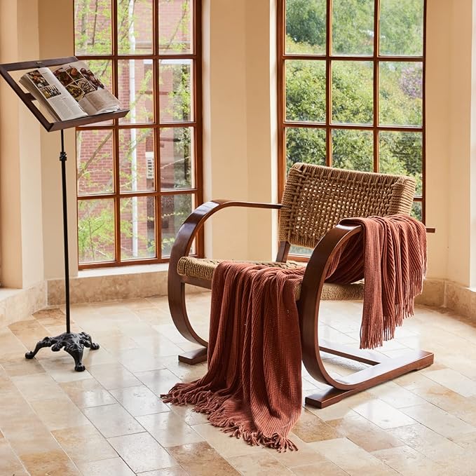 lifein Throw Blanket for Couch, Soft Boho Bed Throw,Cozy Burnt Orange Chenille Knitted Small Spring Lightweight Throw for Spring(Rust,50 * 60")