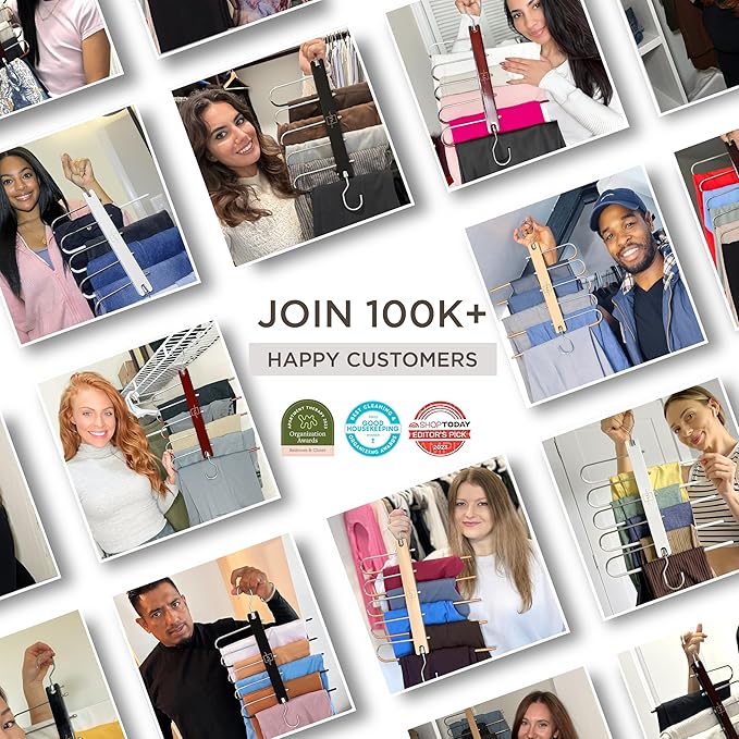 - ENJOY MORE CLOSET SPACE - Clean up closet space with a clothes hangers space saving wardrobe organizer that's unlike other pants hangers for men and women. Your multi hanger set can be a slack hangers, a jeans organizer for closets, skirt organizer hangers, trouser hangers, or scarf organizer giving you a complete multifunctional pants rack.