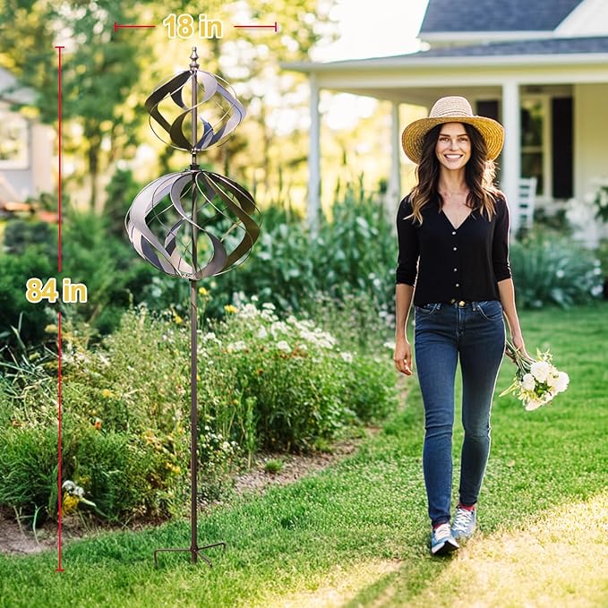 - 【Easy to Assemble】Our yard garden wind spinner no plugs or cords are needed, it is easy to assemble with the instruction. Can display at your front door or backyard garden, extra large size: 24″ W x 24″ D x 84″ H, easy to draw other's attentions.