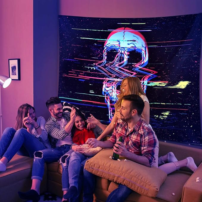 ADDWel Blacklight Skull Tapestry, Black Psychedelic Tapestry Glow In The Dark, UV Reactive Black Light Tapestries Posters Wall Hanging for Room Decor(50 * 60inches)