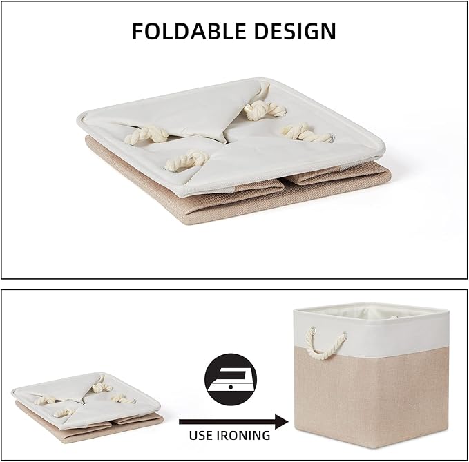 Bidtakay Fabric Storage Baskets for Organizing Beige 13 Inch Collapsible Square Baskets 3 Pack Organization Bins Large Cube Storage Bins Closet Baskets for Shelves Clothes