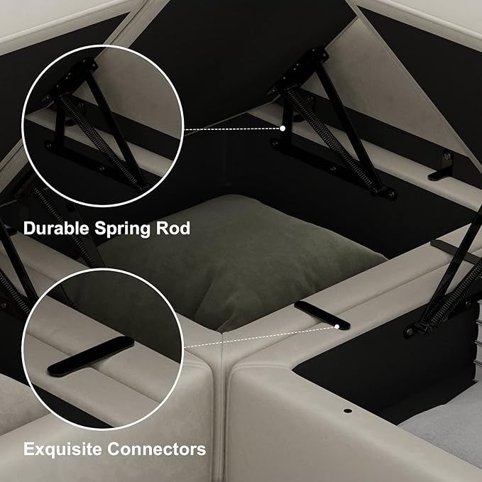 - Invisible Storage Spaces: Each seat of the 7-pieces couch has a hidden storage and the lid automatically stays open in the position so that you can easily and conveniently pick out and put back the things you are storing. Storage dimensions: 22.40''(L)*22.40''(W)"*5.70"(H)
