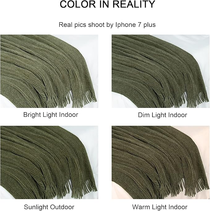 - 【FANTASTICAL DESGIN】LIFEIN throw blanket for couch nicely neutral solid knit design and well-arranged rustic farmhouse style fringes, this knitted throw blanket is in kinda olive green, which is a pretty easy way to match your room to add an extra solid olive green boho feature, don't you want have a olive green throw blanket for your home decor?