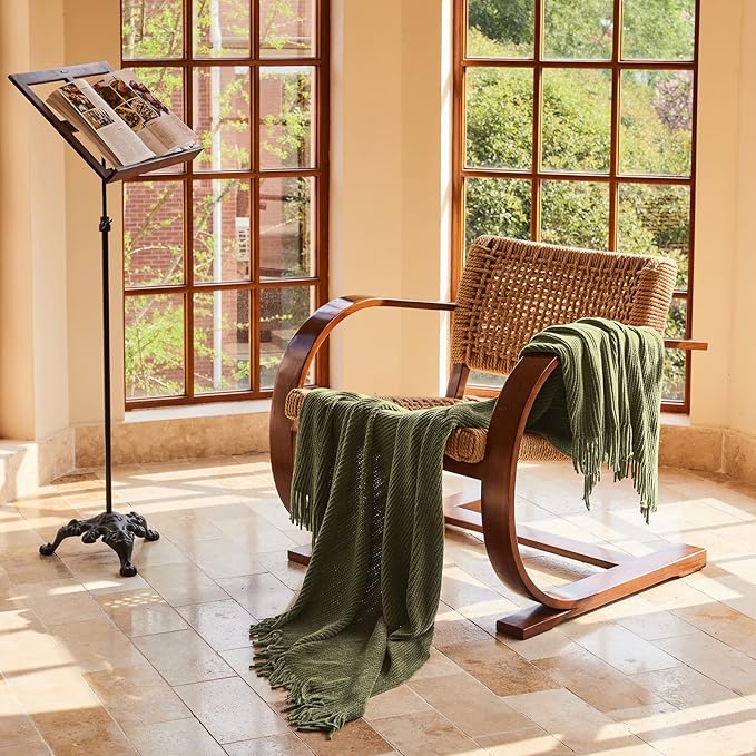 lifein Throw Blanket for Couch, Soft Green Boho Decor Bed Throw,Cozy Knitted Chenille Farmhouse Lightweight Throw for Spring(Olive Green,50 * 60")