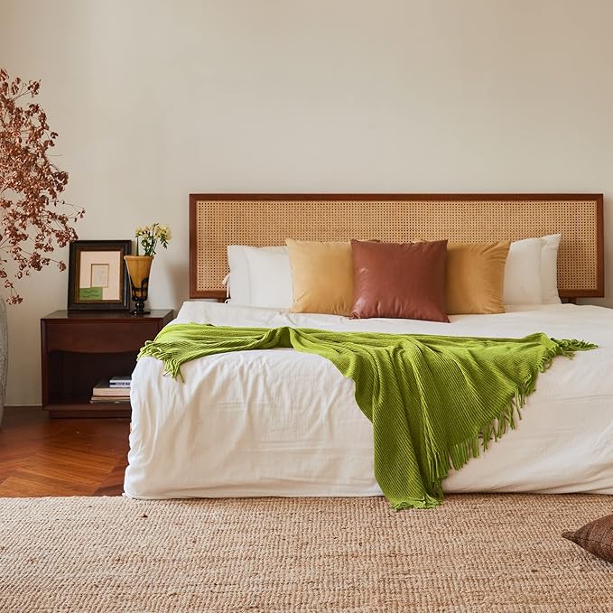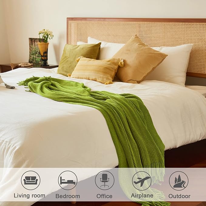 lifein Throw Blanket for Couch, Soft Green Boho Decor Bed Throw,Cozy Knitted Chenille Small Farmhouse Lightweight Throw for Spring(Green,50 * 60")