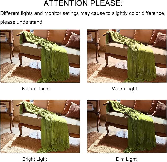 - 【FANTASTICAL DESGIN】LIFEIN throw blanket for couch nicely neutral solid knit design and well-arranged rustic farmhouse style fringes, this knitted throw blanket is in kinda moss green, which is a pretty easy way to match your room to add an extra solid green boho feature, don't you want have a rust throw blanket for your home decor?