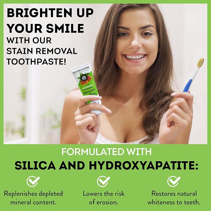 - STAIN REMOVAL Dr Plotka’s stain removal toothpaste is the best whitening toothpaste, using no harsh chemicals to produce that bright smile! Silica and Hydroxyapatite re-mineralize the teeth, which lowers the risk of erosion and restores your teeth to their natural whiteness. Our custom formula contains No sugar, No artificial flavors, dyes, preservatives, or artificial binders.