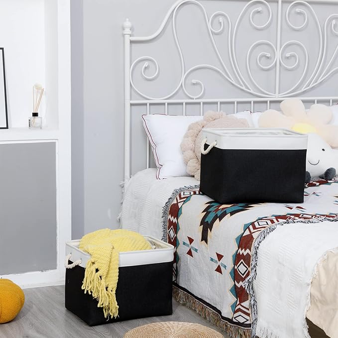 - Cotton Rope Handles and Premium Fabric: The canvas storage bins equipped with handles for moving conveniently. Sturdy soft handles on both sides are convenient to retrieve from shelves. These storage baskets are made of durable fabric which is strong and lightweight