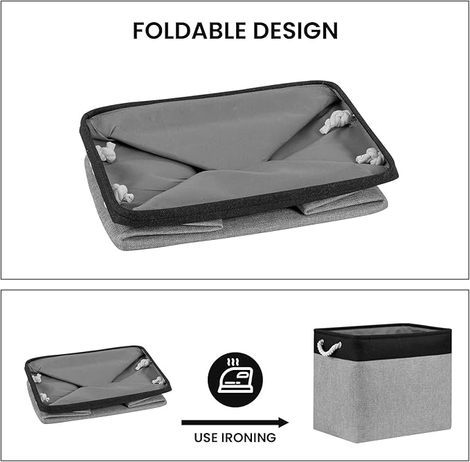 - [Foldable Baskets Set] Simply fold the fabric basket down flat for space-saving storage when not in use or when needing to transport. The basket stays filled for a while and then stays standing. If you mind the creases, you can use an iron to iron the creases in the basket. If you do not use an iron, the creases will slowly disappear as you store your items.