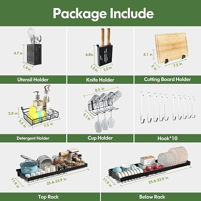- 🔄 Expandable Design for Custom Fit: Adjust the over sink dish drying rack width effortlessly to span most standard single or double sinks, adapting seamlessly to your kitchen layout. The dish drain modular design allows rearranging tiers and accessories to prioritize space for tall glasses, wide pans, or cleaning tools, maximizing vertical storage above the sink