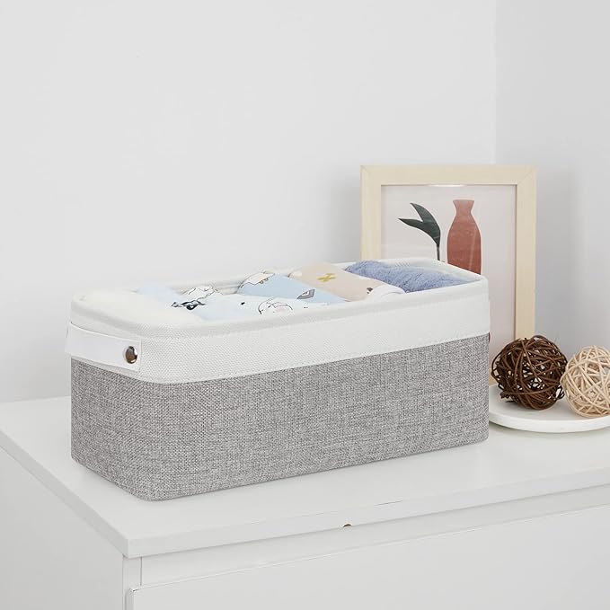 - [PREMIUM MATERIALS] Bidtakay organizing bins are made of three layers of high-quality materials-durable linen and thicken environmental EVA, muslin fabric lining. Meanwhile sturdy metal rod frame around the top to keep the fabric basket shape. Two sturdy white leather handles on both sides for easy carrying.The durable high-quality materials allow these storage bins to be used for a long time