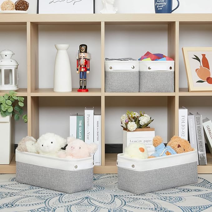 Bidtakay Small Bins for Organization Fabric Baskets for Toilet Paper Storage [4-Pack] Collapsible Narrow Baskets for Towels Socks Organizer Decorative Bins for Nursery Closet Cabinet -15x6x5.5In