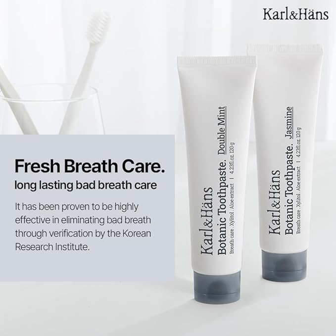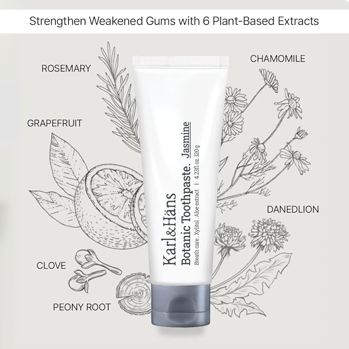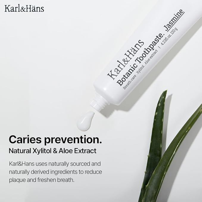Karl&Hans Botanic Jasmine Toothpaste with Fluoride - Natural, Delicate Jasmine Mint Flavor with Rosemary and Green Tea Extracts for Fresh Breath Care and Gum Health, 4.23 oz