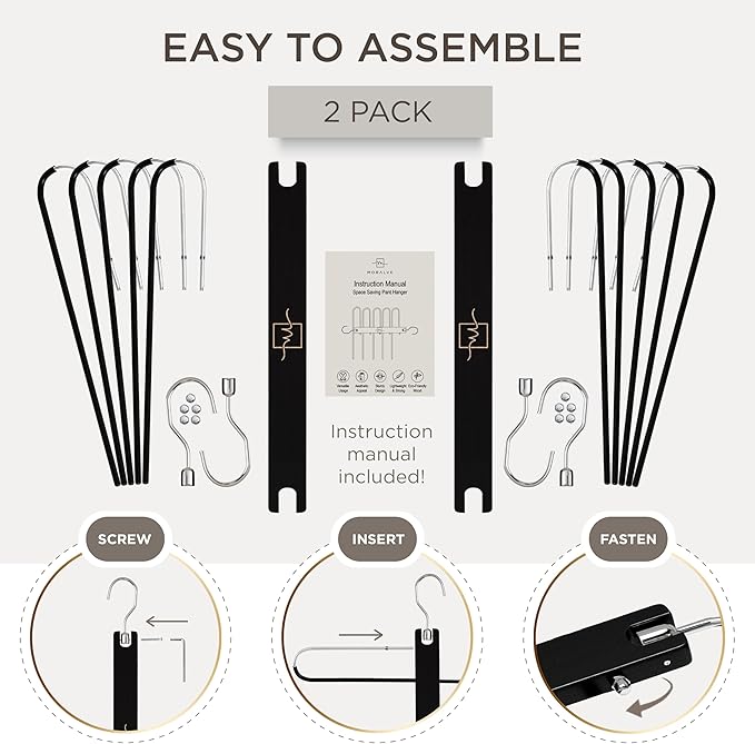 - MULTIUSE SPACE SAVING ORGANIZATION - Our clothes hangers space saving wardrobe organizer goes beyond pants hangers for men and women. Our multi hanger sets are slack hangers, a jeans organizer for closets, skirt organizer hangers, trouser hangers, scarf organizers and more giving a complete multifunctional pants rack.