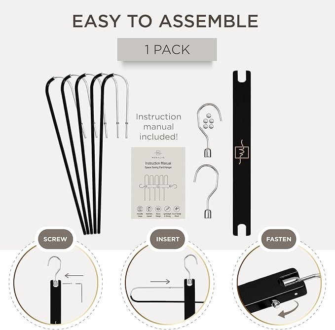 - ASSEMBLE IN MINUTES - Our space saver hangers take minutes to assemble and help you take back your messy closet and have peace of mind with a clutter-free home. Our set comes with detailed assembly instructions that are easy to follow and check out our video to see for yourself just how easy it is.