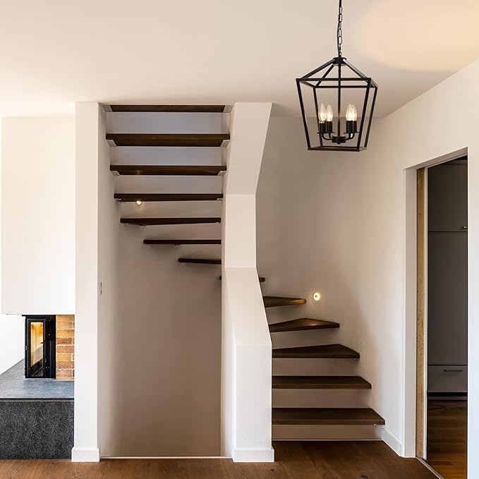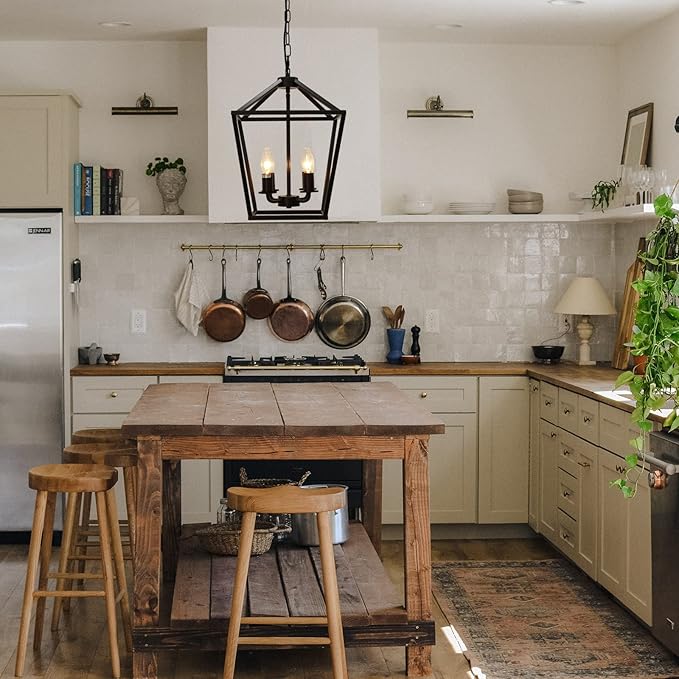 - 【Rustic Lantern Pendant Light】The Industrial black geometric pendant lantern is suitable for your farmhouse decor.vintage mid-centry elements add more fun for your home,dining room,kitchen island,foyer,entry,cafe bar.